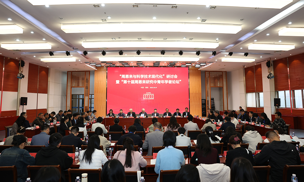 淮师新闻网10月20日电(记者 胡强)金秋十月,硕果盈枝。10月19日,“周恩来与科学技术现代化”研讨会暨第十届周恩来研究中青年学者论坛在淮阴师范学院举行。中共江苏省委党史工作办公室原主任、江苏省周恩来研究会会长张亚青,中共江苏省委党史工作办公室副主任、江苏省周恩来研究会常务副会长吴逵隆等100余名专家学者出席论坛。本次论坛由江苏省周恩来研究会、淮阴师范学院、恩来干部学院、周恩来纪念地管理局联合举办。江苏省周恩来研究会学术委员会主任赵深主持论坛。