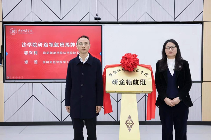 淮师新闻网4月21日电(记者 许飞)4月20日下午,法学院在综南404智慧教室举办“研途领航”考研班成立仪式。党委学工部副部长章雪、法学院院长郭兴利共同为“研途领航”考研班揭牌。考研班全体同学和全体辅导员参加本次仪式,仪式由法学院党委副书记唐力主持。