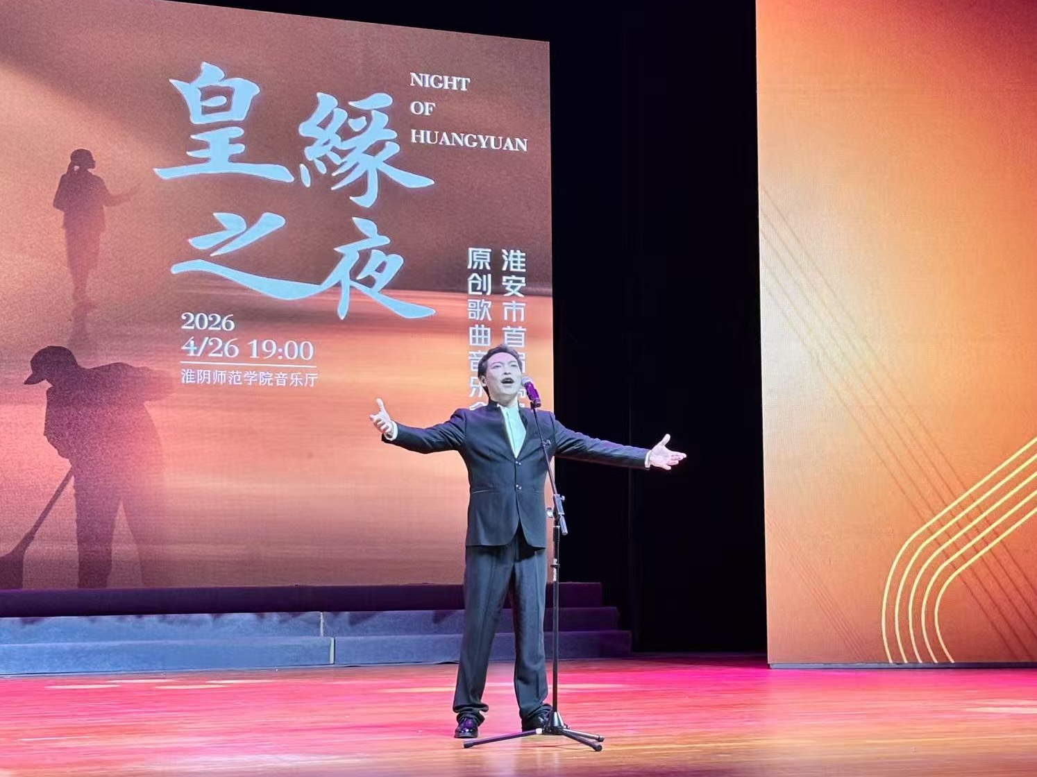 淮师新闻网4月28日电(记者 高慧 高桢绮)弦歌不辍传敬意,礼赞平凡绽微光。4月26日晚,“皇缘之夜”淮安市首届“最美劳动者”原创歌曲音乐会在淮阴师范学院音乐厅隆重举行。本次活动由淮安市总工会、淮安市文联指导,校工会、校团委、音乐学院与淮安市音乐家协会、淮安市青年文艺家协会联合主办,淮安市音乐家协会声乐学会承办,安徽皇缘酒业有限公司独家冠名支持。淮安市政协副主席、市总工会主席王苏君,市总工会党组书记、副主席葛玉海,市文联党组书记、主席程福康,我校副校长张言彩等领导嘉宾,与职工代表、部分师生代表共同观看演出,共庆“五一”国际劳动节,致敬全市各行各业最美劳动者。