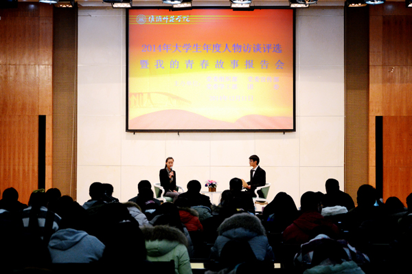 据悉,本次评选活动自11月上旬启动起来,得到了全校同学的积极参与和广泛支持。共吸引近三百名同学报名参与,并在腾讯微博等诸转发竞选口号13000余次。在PU网络投票阶段,十余万人次参与投票,参与人数多面广。为体现大学生年度人物评选的典型性、代表性、辐射性,学校经过三轮评选,评选入围“学习之星”等单项荣誉的8名同学以面对面的形式接受访谈,最终评选出2014年大学生年度人物1名。淮师优秀学子在青春奋斗路途上的点滴成长故事,为同学们的学习生活提供了经验、指明了方向,并将他们的青春事迹作为学习的榜样,载着青春梦想,创造出更多属于自己的辉煌!