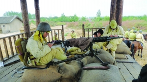 在昨天上午的拍摄中,31名大学生演员先演了几场日军的戏。演出结束后,他们立即脱下日军军服,换上新四军军服,再往脸上涂上泥土,参演影片中的重头戏——八十二壮士牺牲场面。