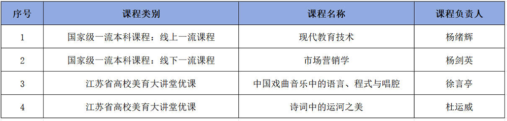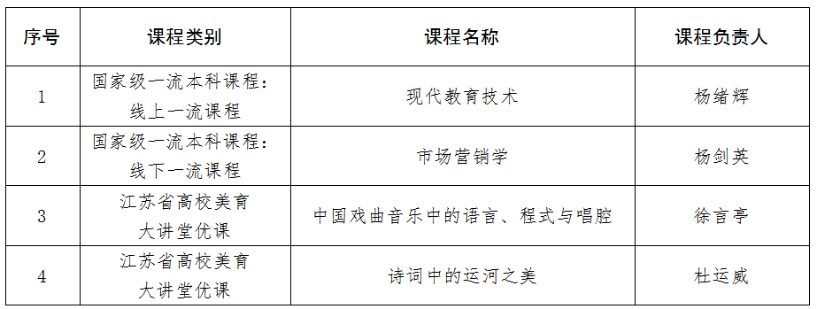 淮师新增国一流课程及省高校美育大讲堂优课名单