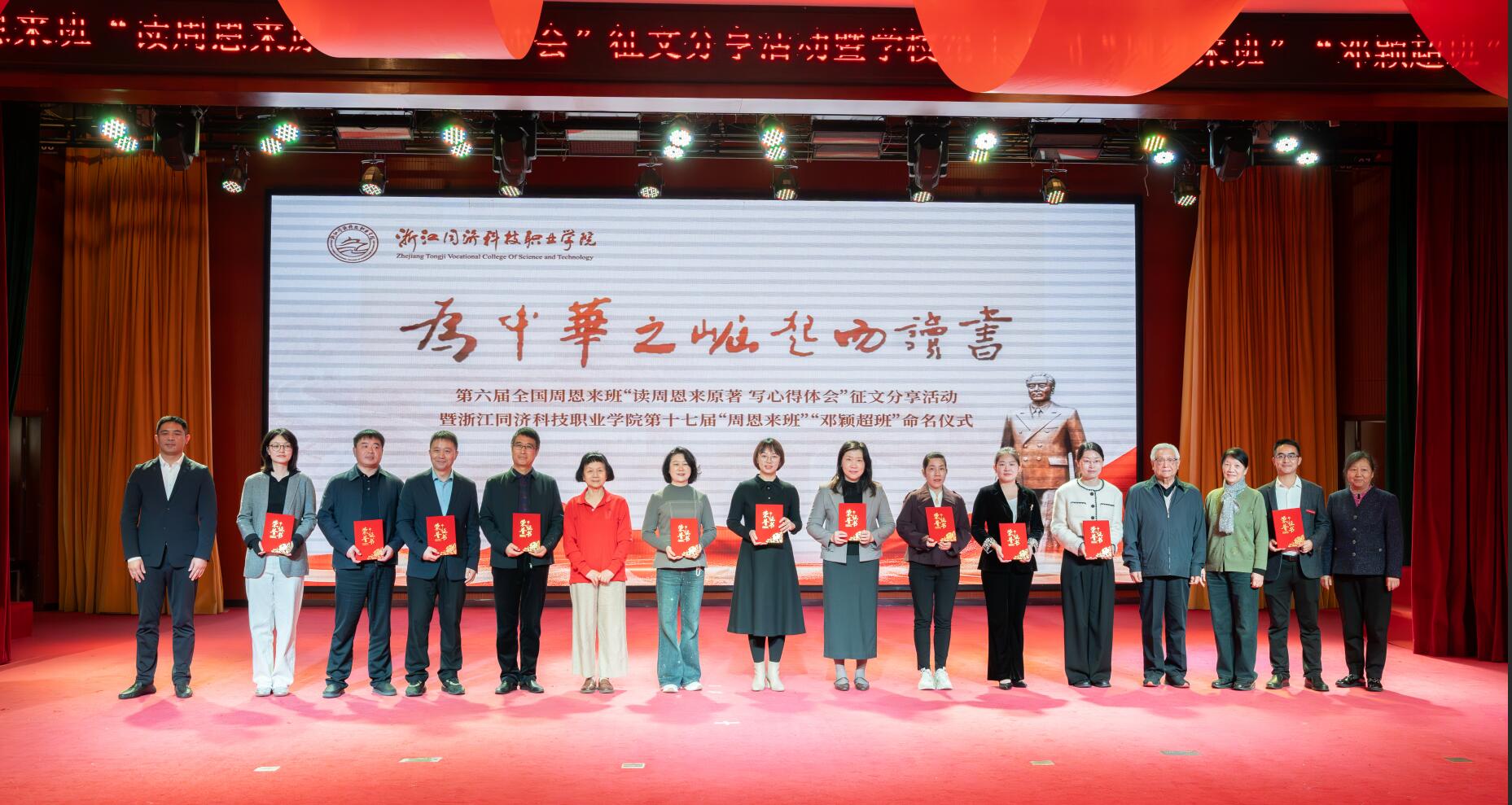 淮师新闻网11月10日电(记者 董旭冉)为进一步强化全国“周恩来班”育人协同效应,将红色基因融入青年成长全过程,11月3至5日,第六届全国周恩来班“读周恩来原著,写心得体会”征文分享活动颁奖典礼暨第十一届“周恩来班”高质量发展研讨会在浙江同济科技职业学院举行。周恩来总理秘书、武警指挥学院原副院长纪东;周恩来总理侄女、第十一至第十三届全国政协委员周秉建;原中央文献研究室室务委员、中国中共文献研究会周恩来思想生平研究分会首任会长廖心文;中共中央党史和文献研究院对外合作交流局原局长、中国中共文献研究会周恩来思想生平研究分会会长杨明伟;中国中共文献研究会周恩来思想生平研究分会秘书长李清平等出席活动。淮师应邀参加并作主题发言。
