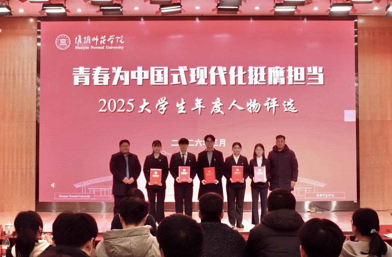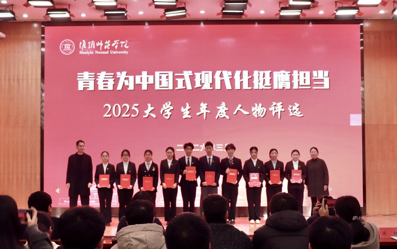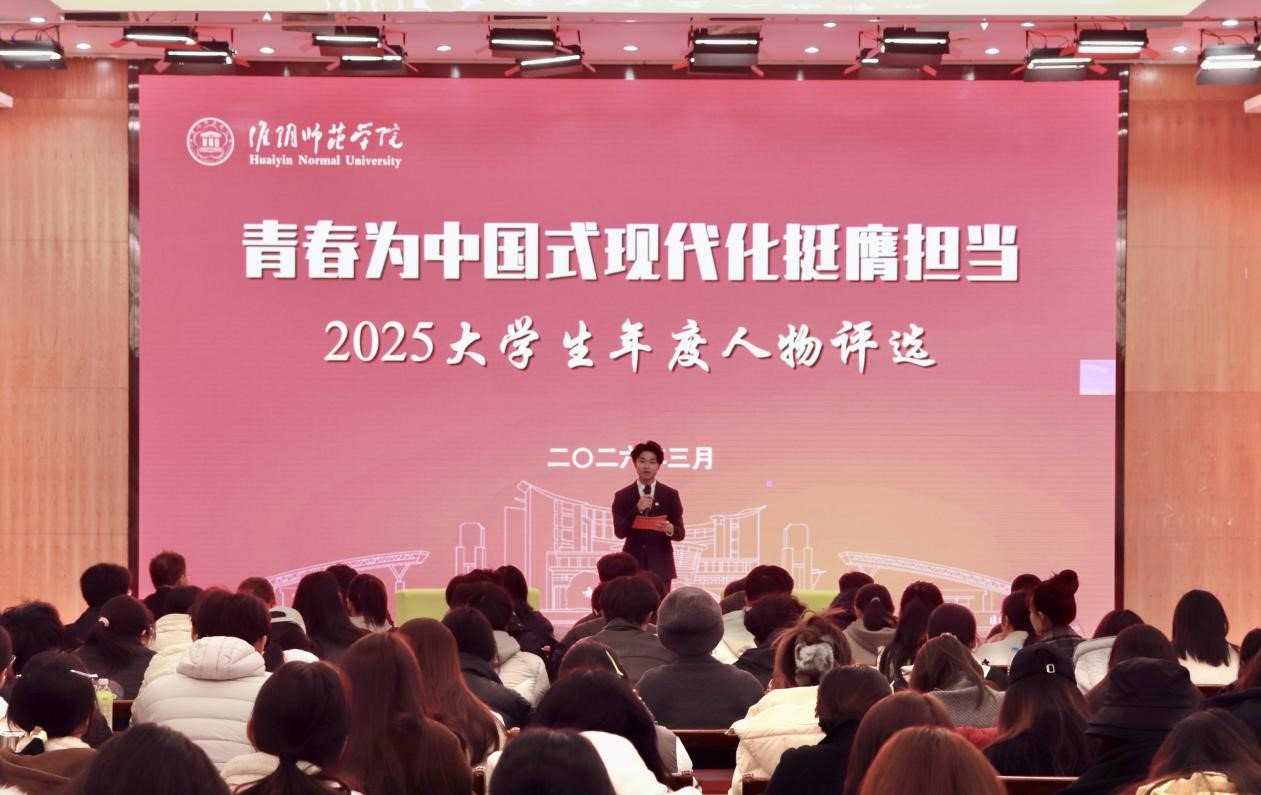 “大学生年度人物评选”活动由党委组织部、党委宣传部、党委学工部、校团委等部门联合举办。活动自去年12月份启动以来,得到了全校师生的积极参与和广泛支持,评选活动分为四个阶段:第一阶段为宣传培育期,校院两级深入挖掘,通过翔宇网、团委微信等平台宣传优秀学生和团队的典型事迹;第二阶段为候选人推荐期,分为学院团委推荐和学生自荐两个部分,着重发掘优秀青年典型;第三阶段为宣讲评选期,分为两轮投票,第一轮投票由各学院学生代表组成的大众评审团现场打分与专家评委组考察结合的方式,选出各类型候选人,第二轮投票由专家评委组,选出年度人物候选人;第四阶段为访谈评选及事迹宣传期,通过访谈评选的形式最终确定“2025淮阴师范学院大学生年度人物”。
