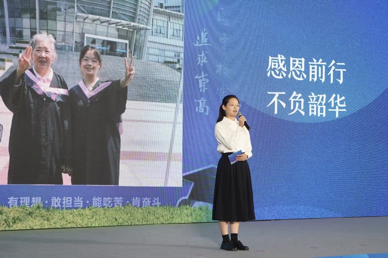 淮师毕业生严慧在全国高校毕业生“金秋启航”校园招聘月启动仪式上作交流发言