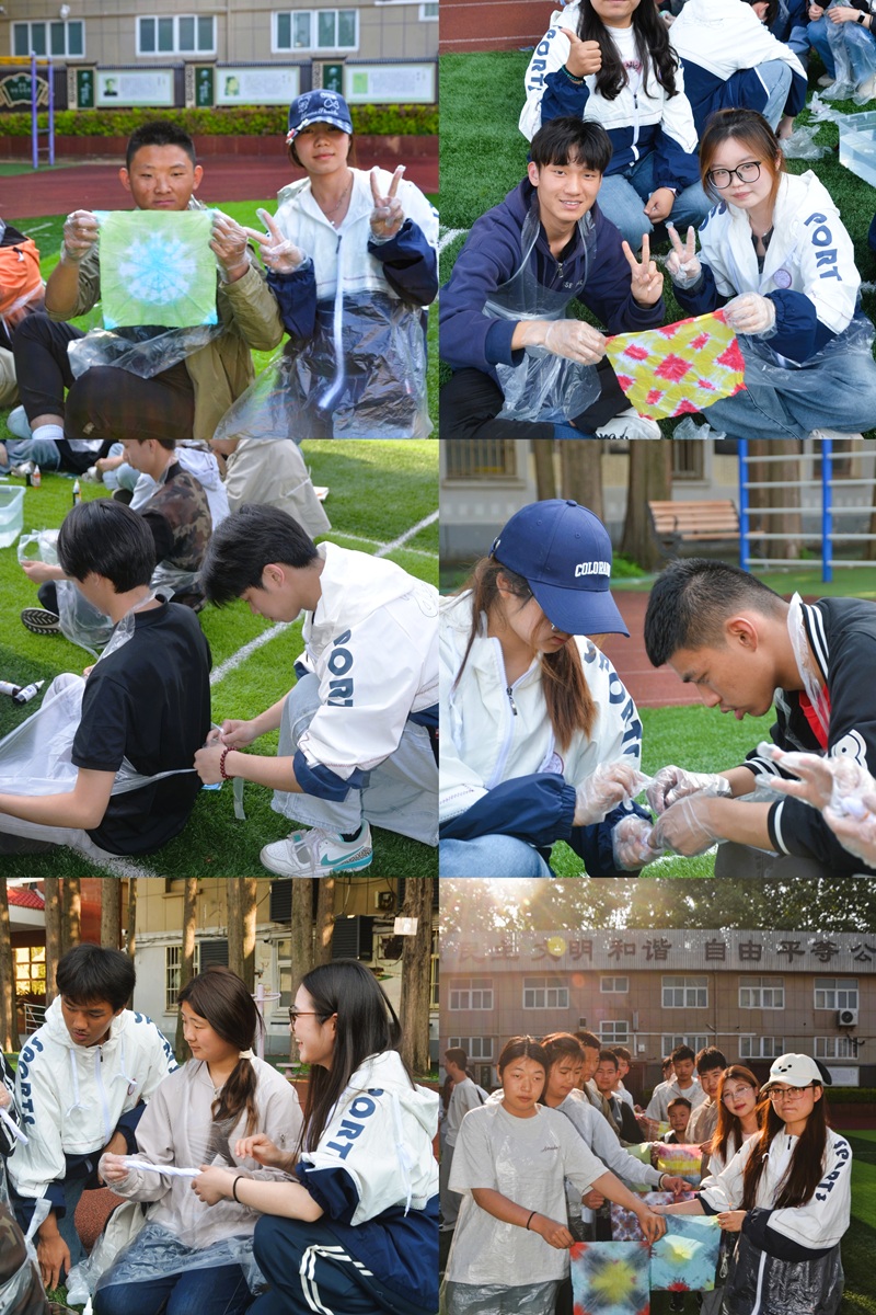 志愿者一对一耐心指导,手把手带领孩子们学习扎结、浸染、晾晒。缤纷色彩在素布上晕染绽放,每一件作品都藏着童真与美好。