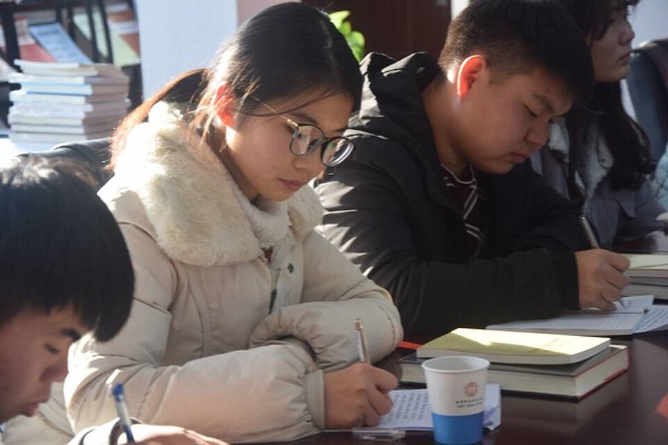 活动伊始,关工委的老师们向同学们赠书,传递出冬日的温暖与关怀,同学们接过书籍并表示了由衷的感谢。随后1608班的伍志鹏同学作为学生代表发言,他说到:"很感谢国家与社会所给予的帮助,我会在努力学习的同时怀抱感恩之心来帮助他人。现在我正着手创办阳光耕耘励志学社,希望能帮助更多的同学,将温暖传递出去。"紧接着,何善厚与王霞玲两位老师发表讲话。王霞玲老师从学习与生活两个方面对同学们提出一些建议,同学们在学习上要刻苦认真,学有所成才能更好地为国家做贡献,而在生活上要自我照顾、增强体魄,身体强健才能绽放最美丽的青春年华。何善厚书记则以亲身事例给予同学们一些生活感悟。他谈到:"很少有人会永远一帆风顺,生活中我们难免会遇到挫折,关键是在困难中锻炼自己、积累经验,然后再次扬帆起航。"最后,鲍恩波书记总结发言。他提到,学院一直秉承"想学生之所想、急学生之所急、谋学生之所需"的理念帮助经济困难的学生,希望同学们认真学习、正确认识贫困并学会感恩,努力提高自己的知识修养,同时对在座的的各位学生代表表达了经管学院对他们的殷切期望。