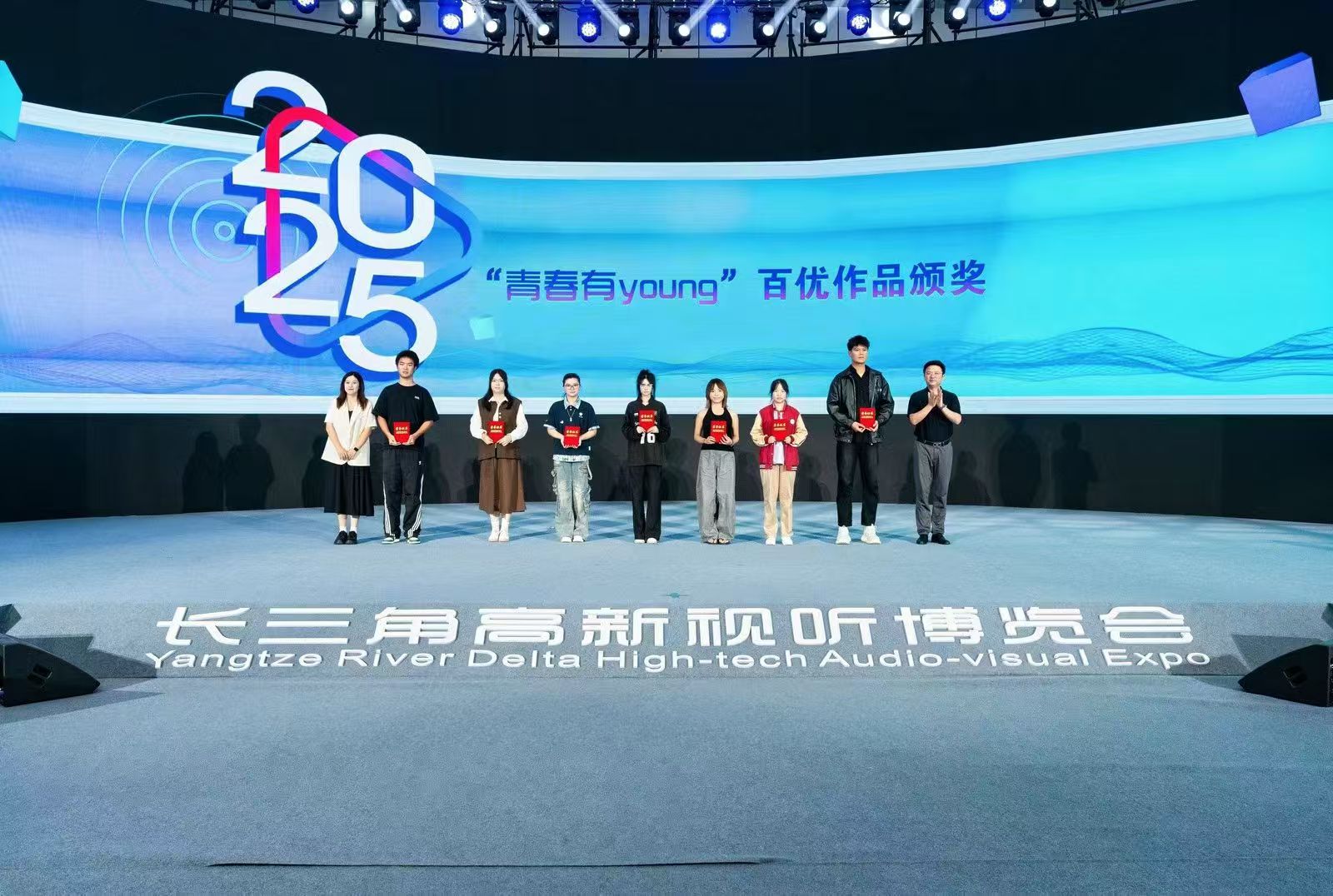 淮师新闻网10月13日电(记者 薛凤琳)日前,在2025长三角高新视听博览会现场,“青春有yang”百优作品获奖名单公布并集中颁奖。淮阴师范学院新闻与传播学院周浒、王新鑫和宋锦轩等老师指导,高尚前、姚景天和麻书鸣等同学创作的四项AI短视频作品在比赛中获奖。