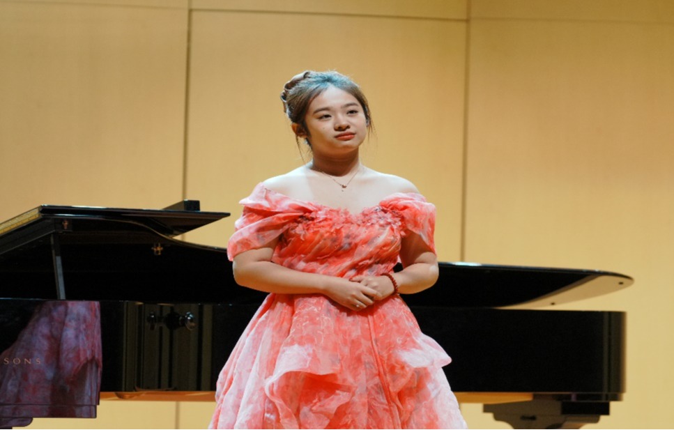 古典与现代的碰撞在《定风波》《大江东去》中达到高潮。苏轼词作改编的《大江东去》作为中国近代第一首艺术歌曲,学子以“西技中魂”的演绎方式,开篇“大江东去”四字一音一字,尽显历史沧桑感;在“乱石穿空,惊涛拍岸”段落,通过紧凑节奏与音程大跳再现赤壁雄奇,而“人生如梦”的尾声则以气声絮语式演唱,传递出超然豁达的人生境界。演唱中,学子对气息控制、咬字吐字的精细化处理,展现了扎实的专业功底,获得现场阵阵掌声。